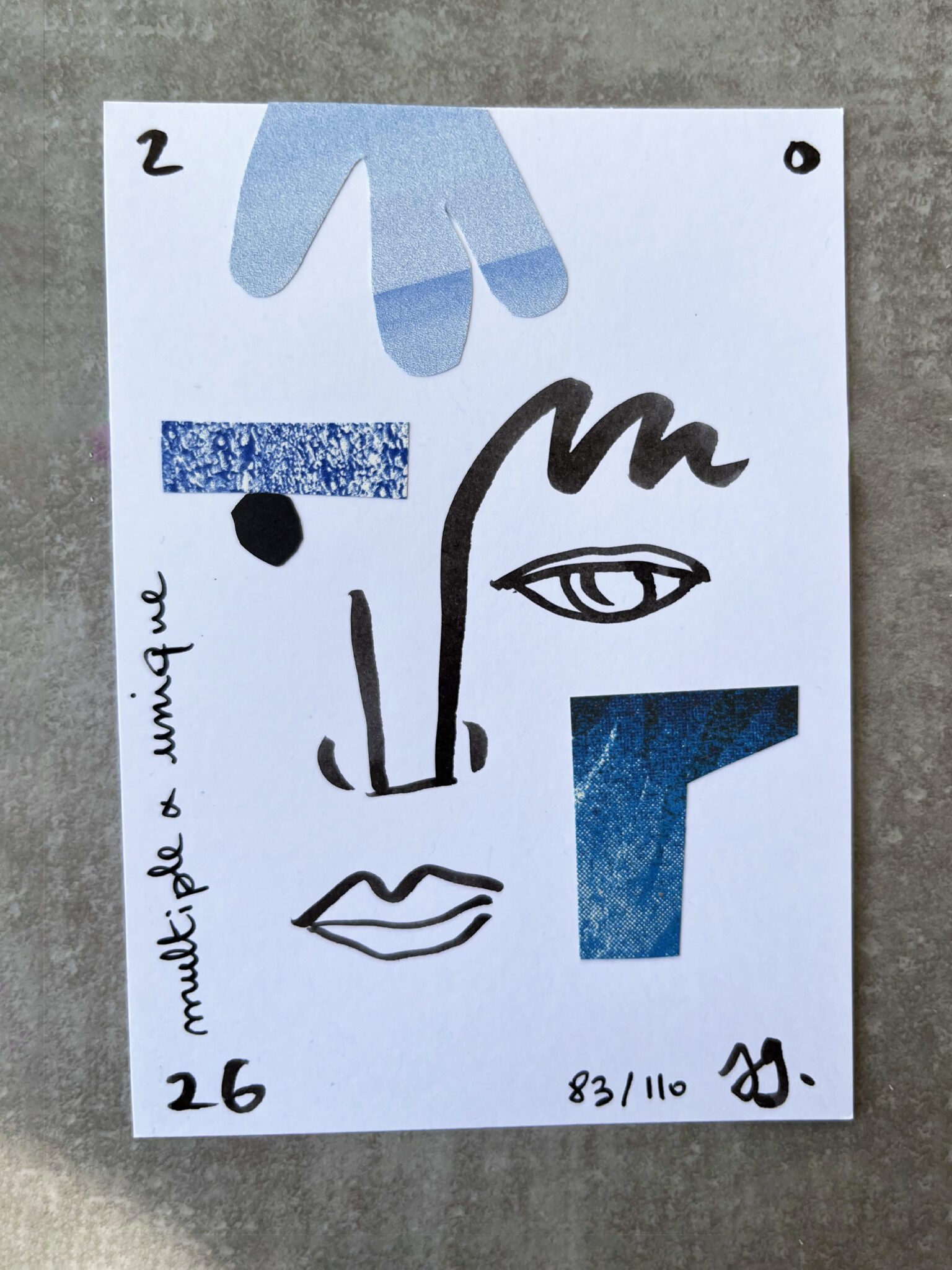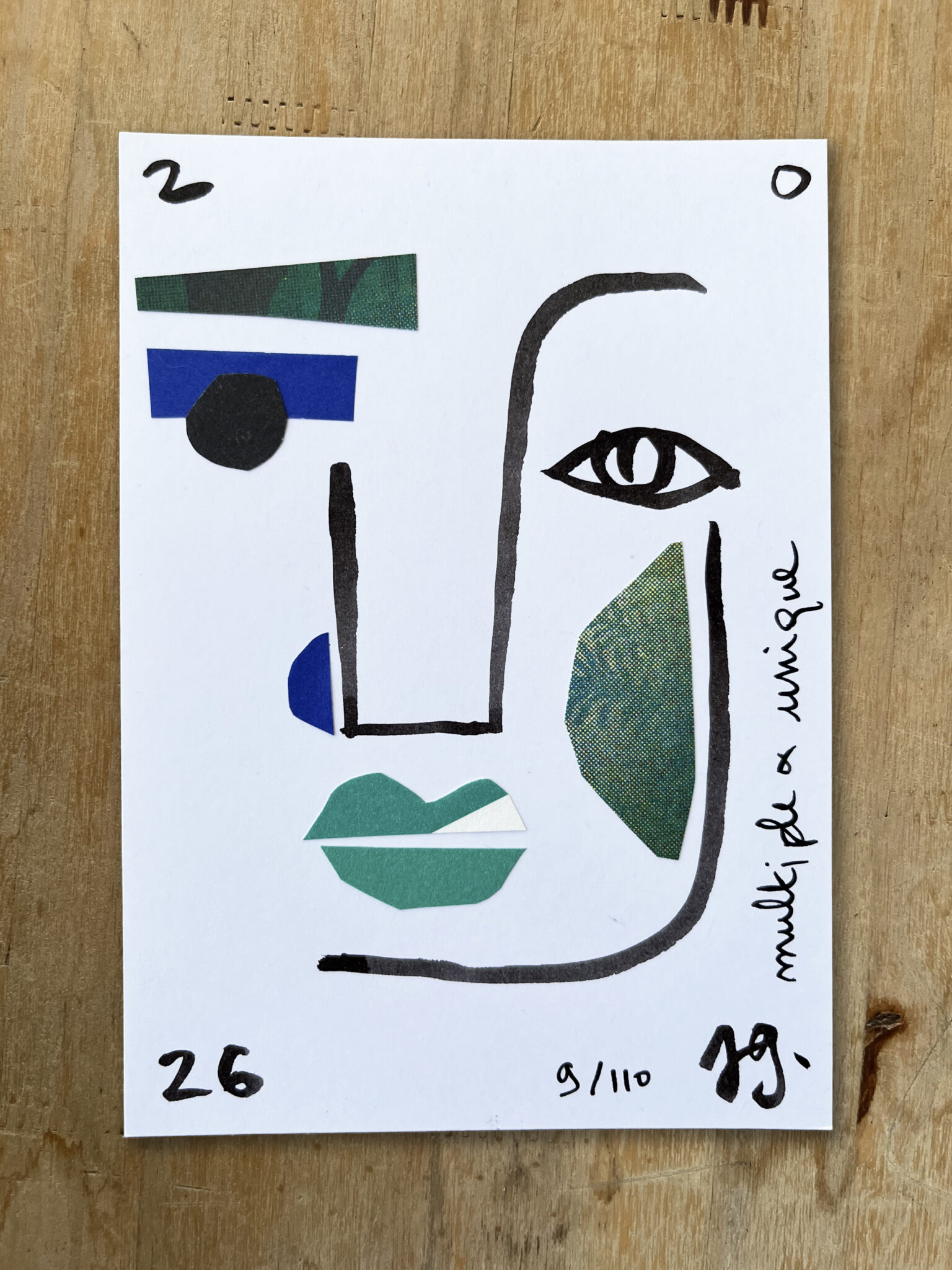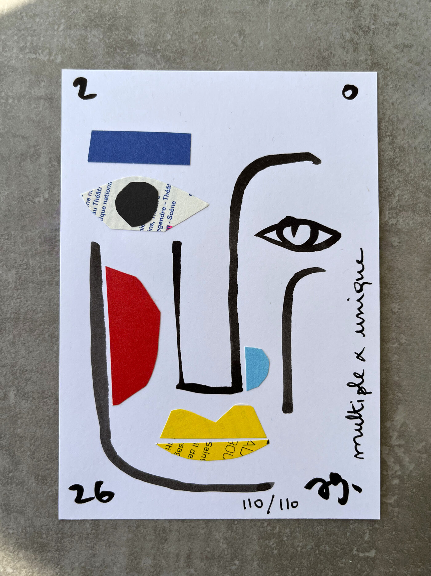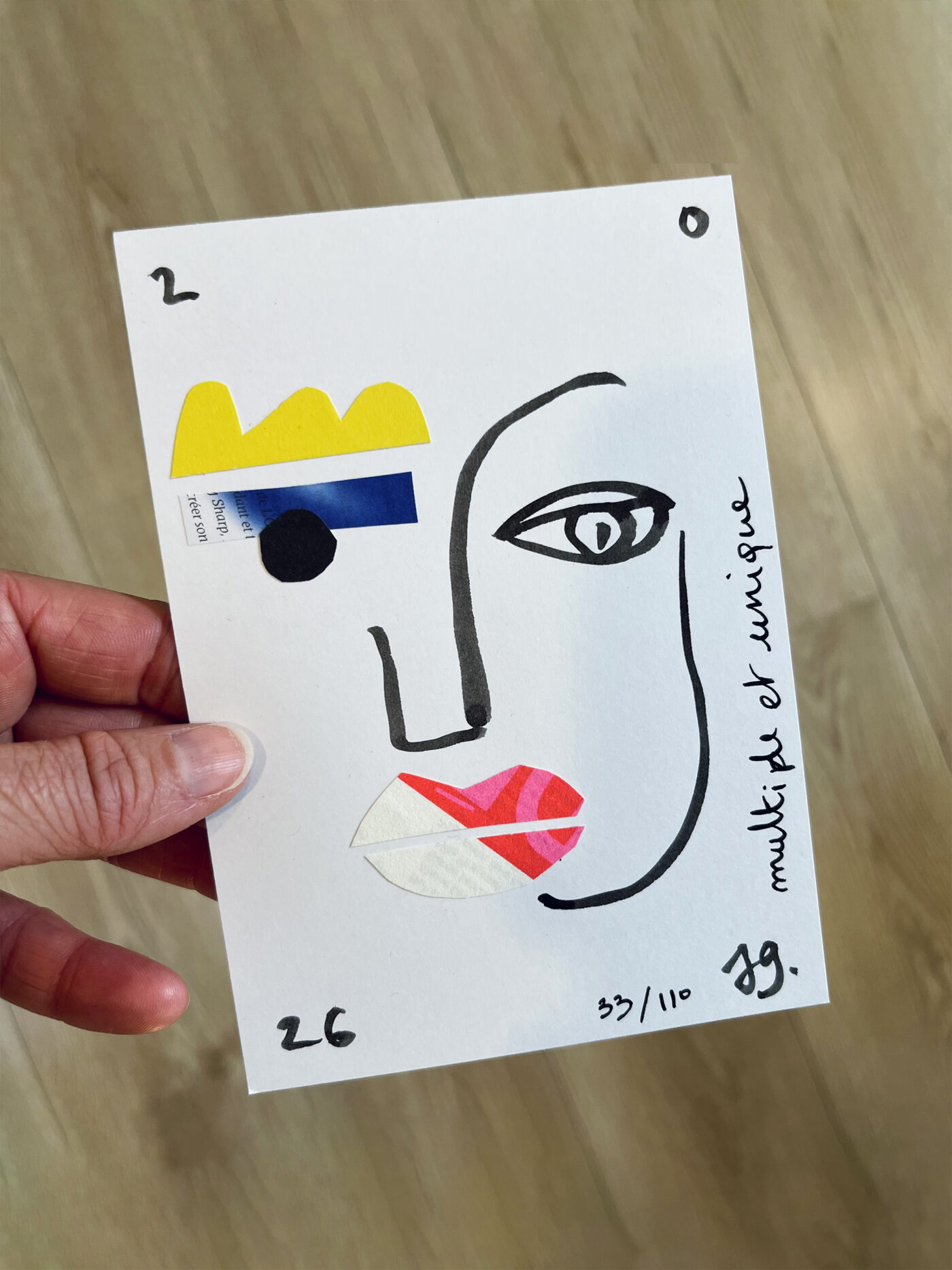 J’ai dessiné, découpé, collé.. afin de réaliser une série de 110 cartes de vœux, faites à la main et toutes différentes.
