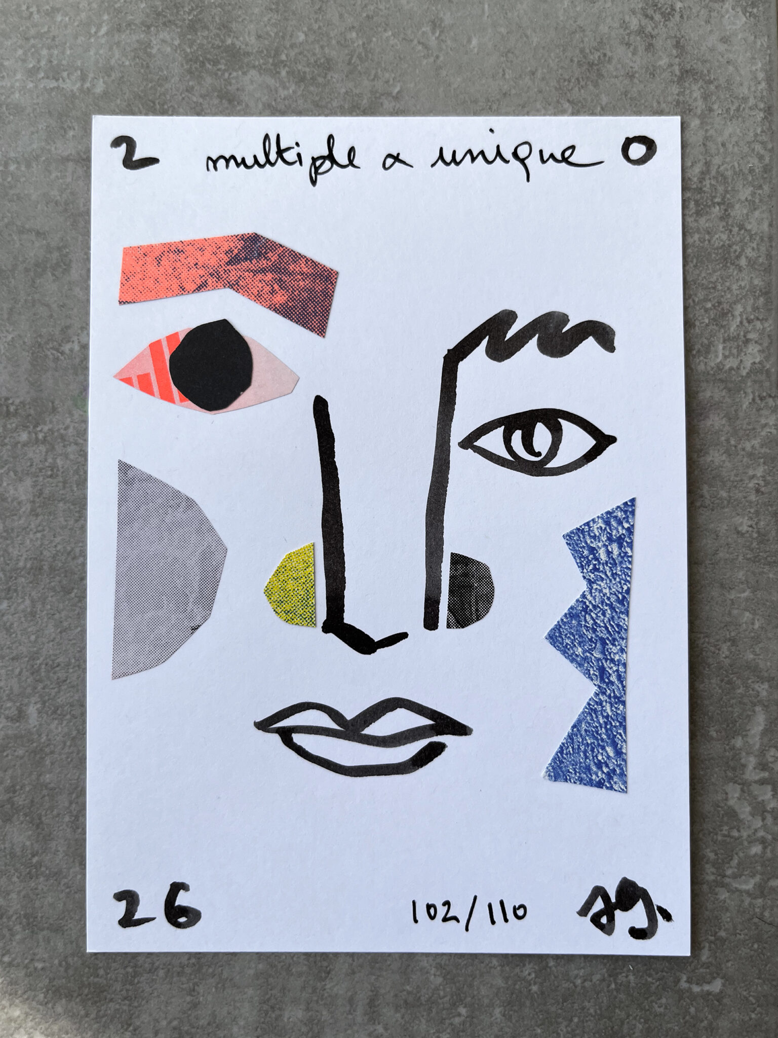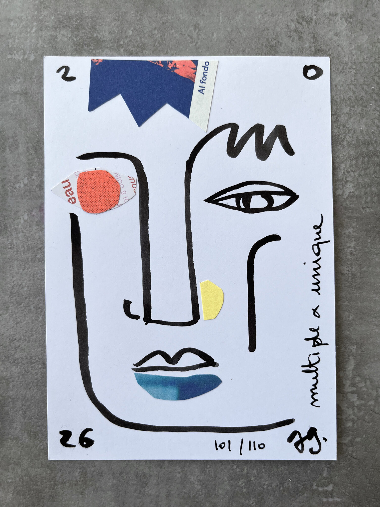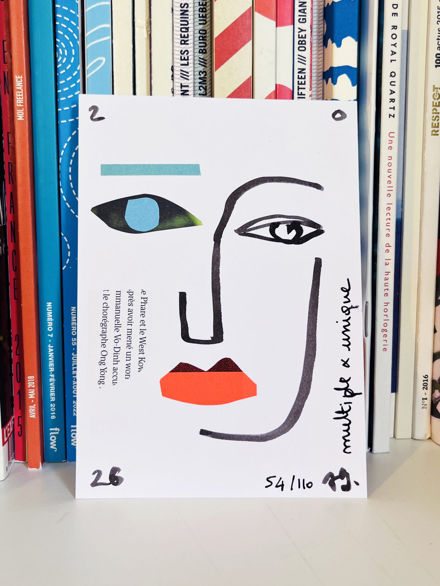 J’ai dessiné, découpé, collé.. afin de réaliser une série de 110 cartes de vœux, faites à la main et toutes différentes.