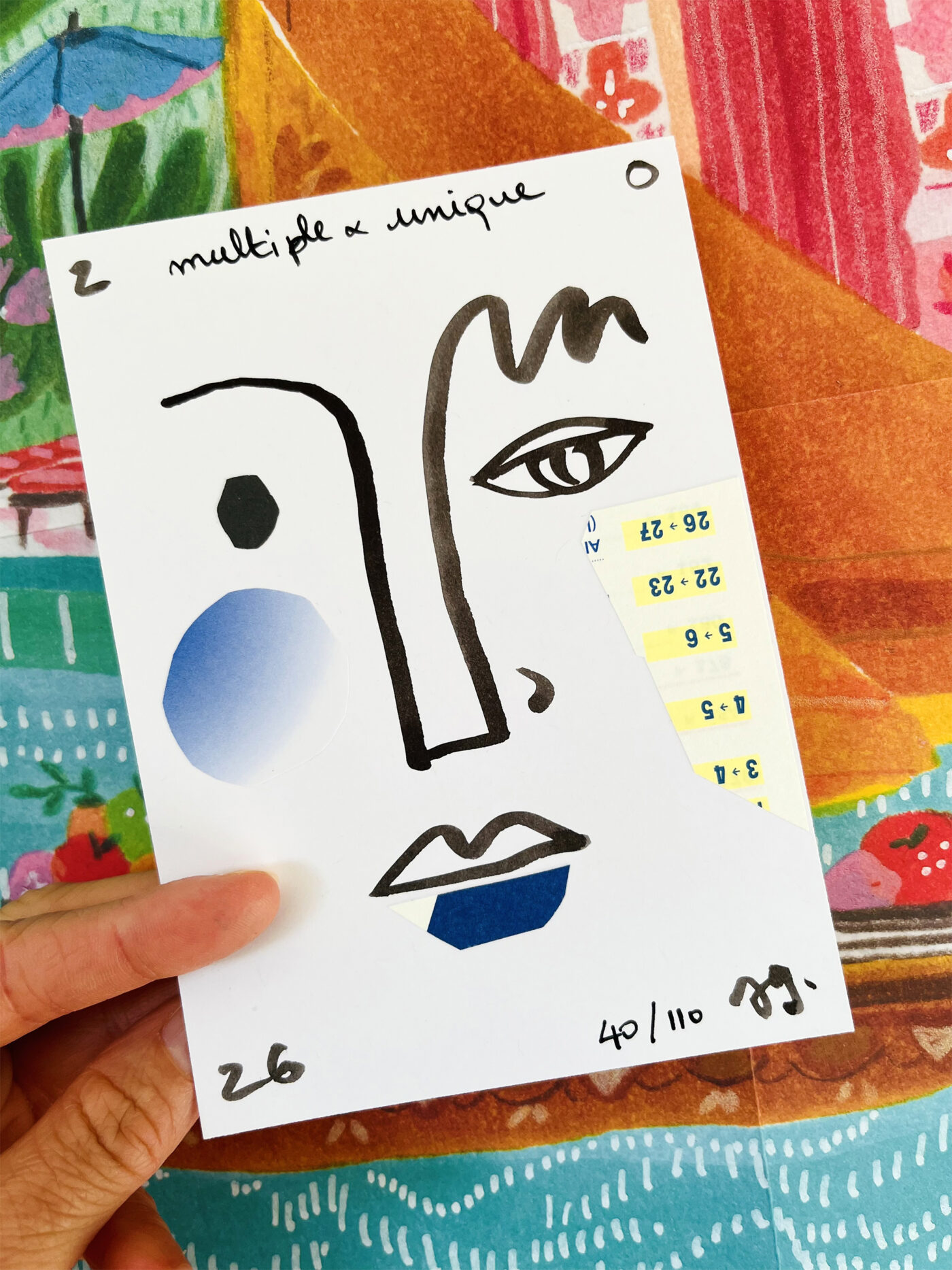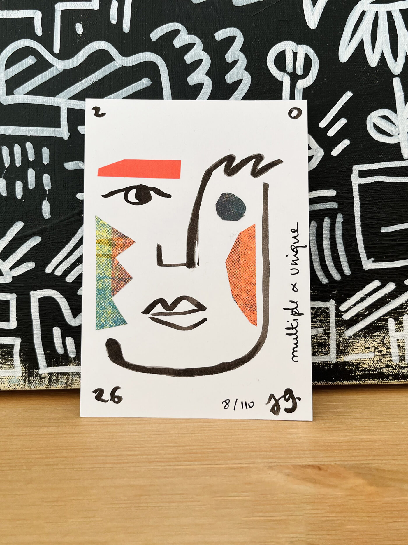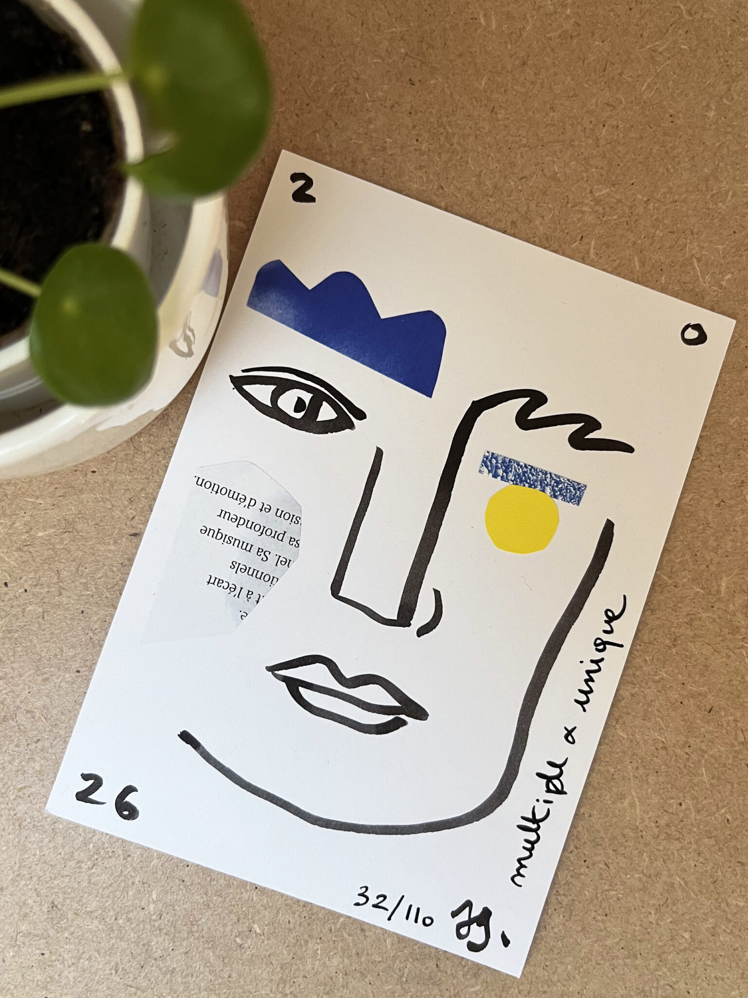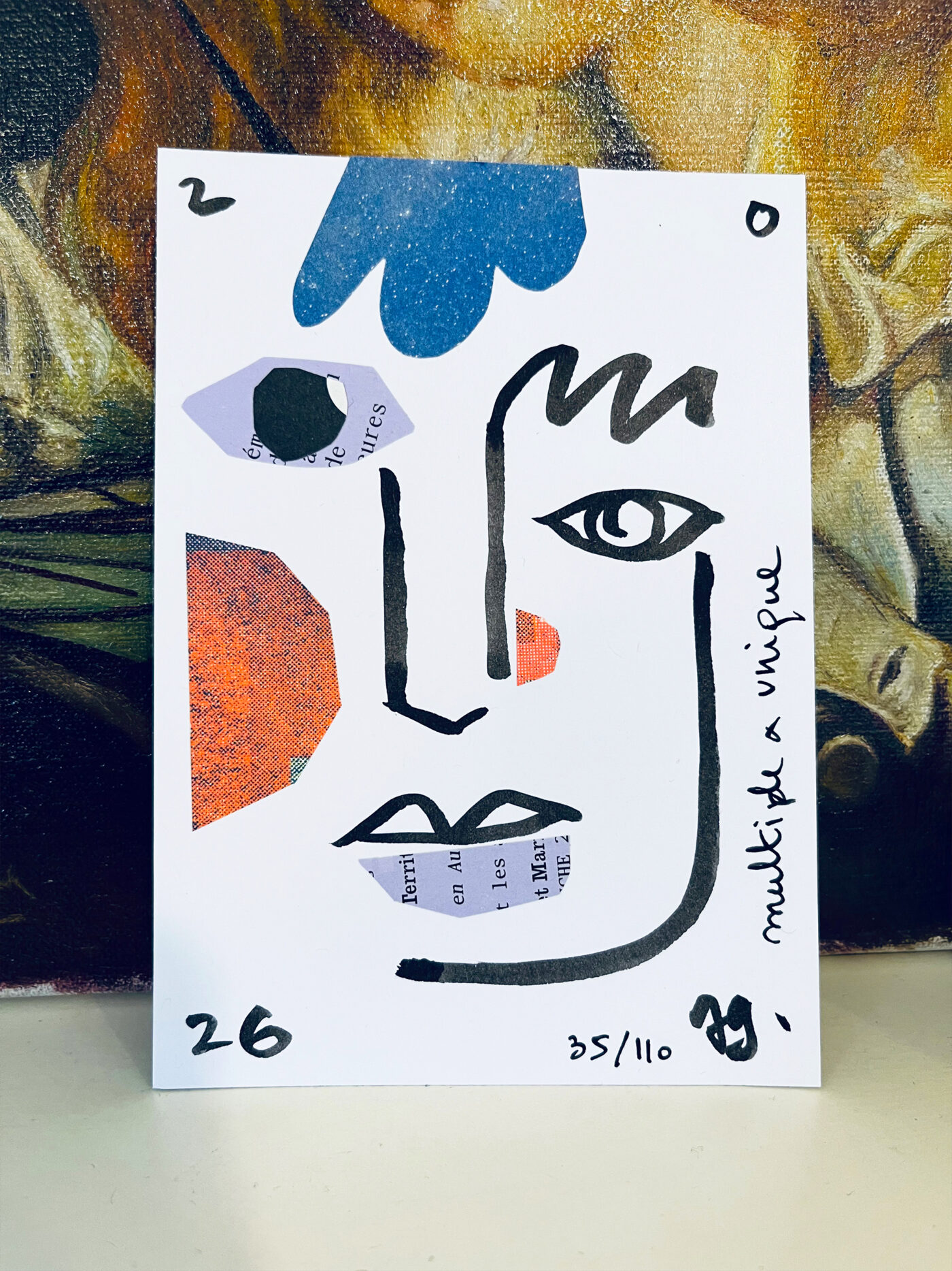 J’ai dessiné, découpé, collé.. afin de réaliser une série de 110 cartes de vœux, faites à la main et toutes différentes.